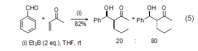 triethylboron can also be substituted metal reagents realize the tandem michael-aldol reaction and synthesize α-alkyl-β-hydroxyketone derivatives (formula 5) with high yields[4].